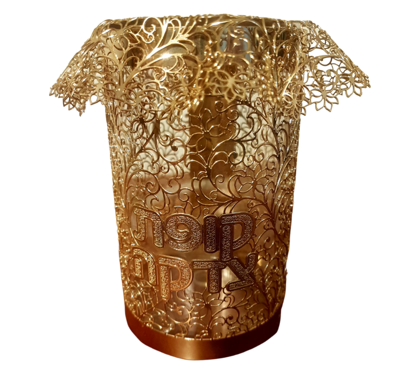 כמות של קופת צדקה מוזהבת בעבודת לייזר